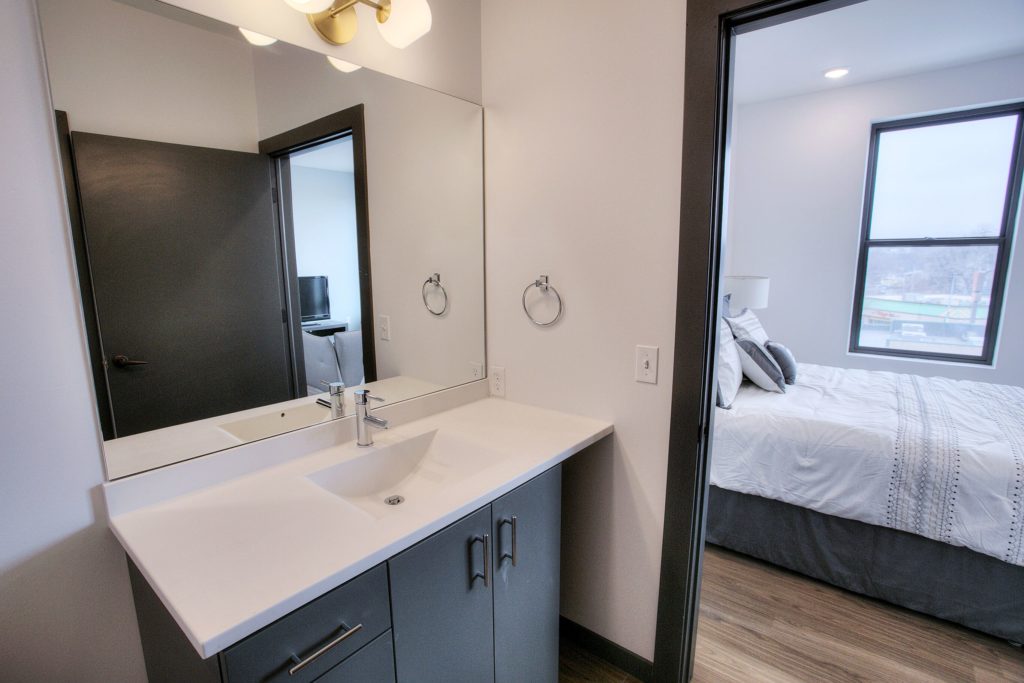 Mini in size, large in attitude and closet space! The Morocco houses some of the building’s largest closet and living space! It also features a full-size washer and dryer, large soaking tub, and laminate plank flooring.